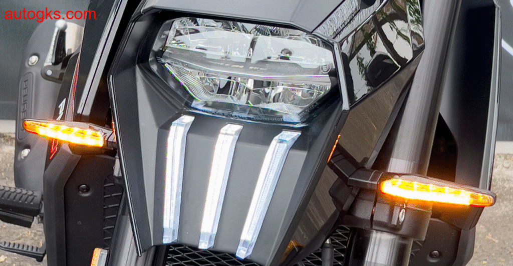 You can tell a lot about a bike by how people react to it at chai stalls. The PM-01, with its striking headlight mask and sharply sculpted lines, turned heads even before I opened the throttle. Its face carries the DNA of Peugeot’s automotive design language, three aggressive LED stripes resembling lion claws for the DRLs, a motif repeated at the tail. It’s distinct, if not divisive. I heard one guy call it “Iron Man’s nephew,” which honestly felt fair. The paint and panel fit are commendable, even under the harsh scrutiny of mountain sunlight. The 41mm upside-down fork up front gives it some visual heft, but the rear’s skinny steel swingarm seems a bit half-hearted. Nonetheless, the PM-01’s silhouette punches above its 125cc weight class, especially in a place like Bomdila where the air is thin, but style matters. The ergonomics follow classic roadster cues: an upright riding posture, relaxed knees, and a slightly backward-swept wide handlebar that gives you an eagle’s grasp on those hairpins. At 810mm seat height, even my 5’9″ frame found both comfort and control on this 152-kg package. The 17-inch Metzeler Sportec M5 Interacts stuck to the tarmac like marmalade to toast, making switchbacks a delightful exercise in confidence.