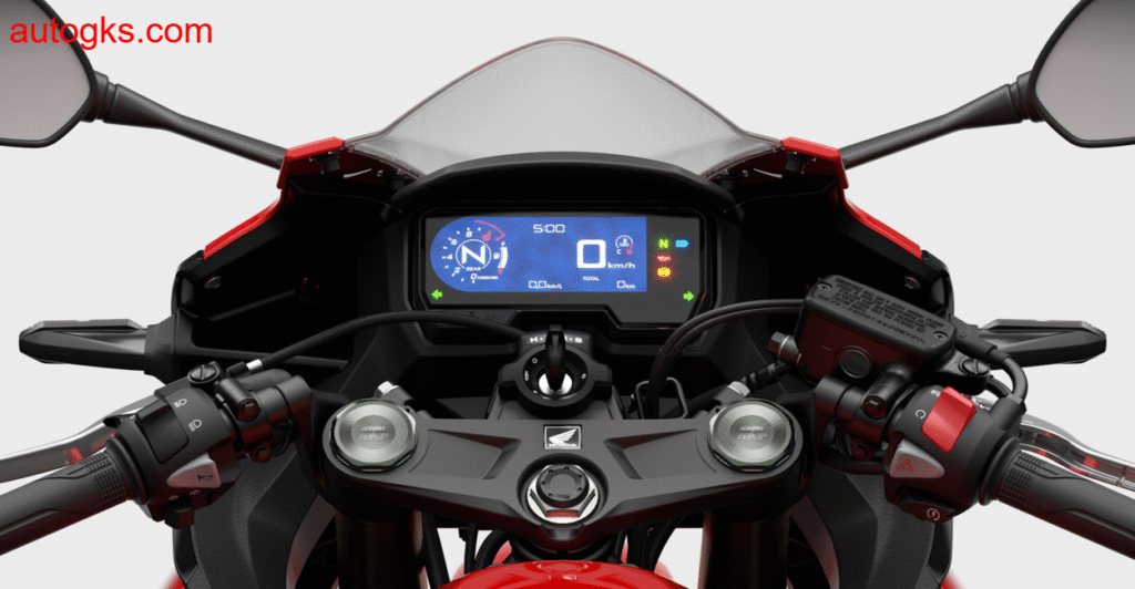 If there’s one area where the CBR500R really won me over, it’s comfort. You look at it and think, “clip-ons, sharp tail, tucked stance, this is going to hurt after two hours.” But you’d be wrong. The ergonomics are smartly sorted. You’re leaned forward, yes, but not aggressively. There’s enough support from the fairing and tank to ease weight off your wrists, and the windscreen does a decent job deflecting the windblast. At 5’10”, I had no complaints, even after a four-hour stint across the hills. The seat is low, plush, and broad enough for longer rides. Passenger comfort is… well, it’s a sports bike, so it’s not the main focus. But for solo riders, it’s supremely usable. And the little touches, a 5-way adjustable brake lever, crisp LCD dash, and even gear indicator, just add to the sense that Honda’s done its homework here. Even the fuel economy is impressive; I saw a real-world average of 3.8 liters/100 km, giving me a solid 400+ km range with the 17.1-liter tank.